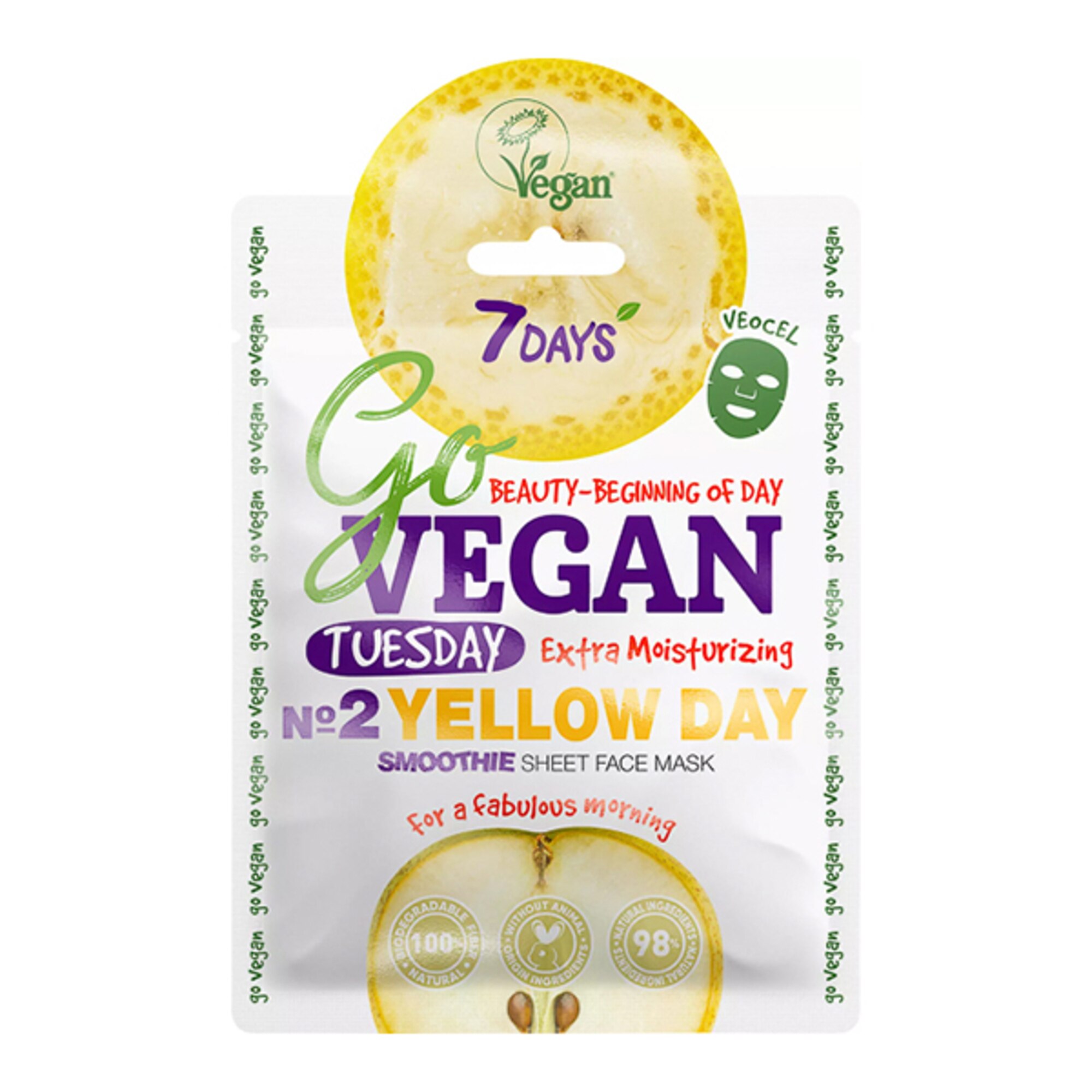 La maschera 7DAYS GoVegan del martedì regala una pelle più sana, levigata e radiosa, per un immediato EFFETTO WOW! L'estratto di Pera idrata profondamente e previene la secchezza cutanea, mentre l'olio di Mandorle Dolci e l'estratto di Banana nutrono e leniscono la pelle, offrendo un trattamento ristrutturante intensivo. Per migliorare significativamente la qualità della pelle si consiglia di completare la serie 7DAYS GoVegan: 1 maschera al giorno per 7 giorni.