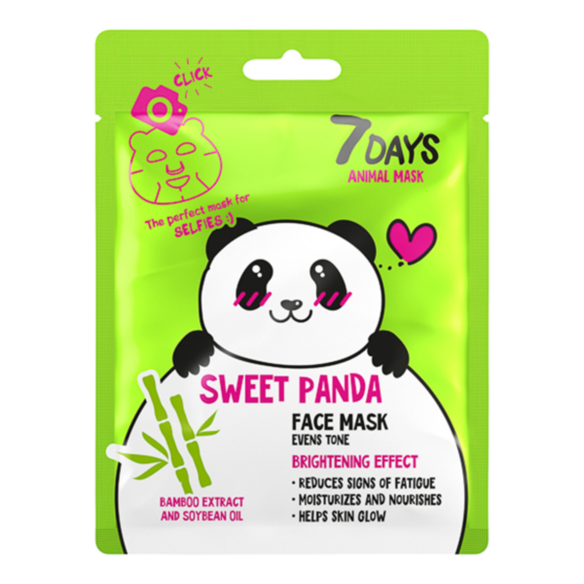 Cura perfetta della pelle + contenuti per i social media = Maschere ANIMAL! Ogni maschera ha la forma di un simpatico animaletto e un complesso di principi attivi per la cura della pelle. Il panda ama il Bambù e il suo estratto stimola i processi disintossicazione dell'epidermide, oltre a migliorare il tono e l'elasticità cutanea. La maschera contiene un complesso vitaminico (A, B, C ed E) ad azione rigenerante e antiossidante. Mentre l'olio di Soia rende la pelle morbidissima. Questa maschera vi darà la carica!