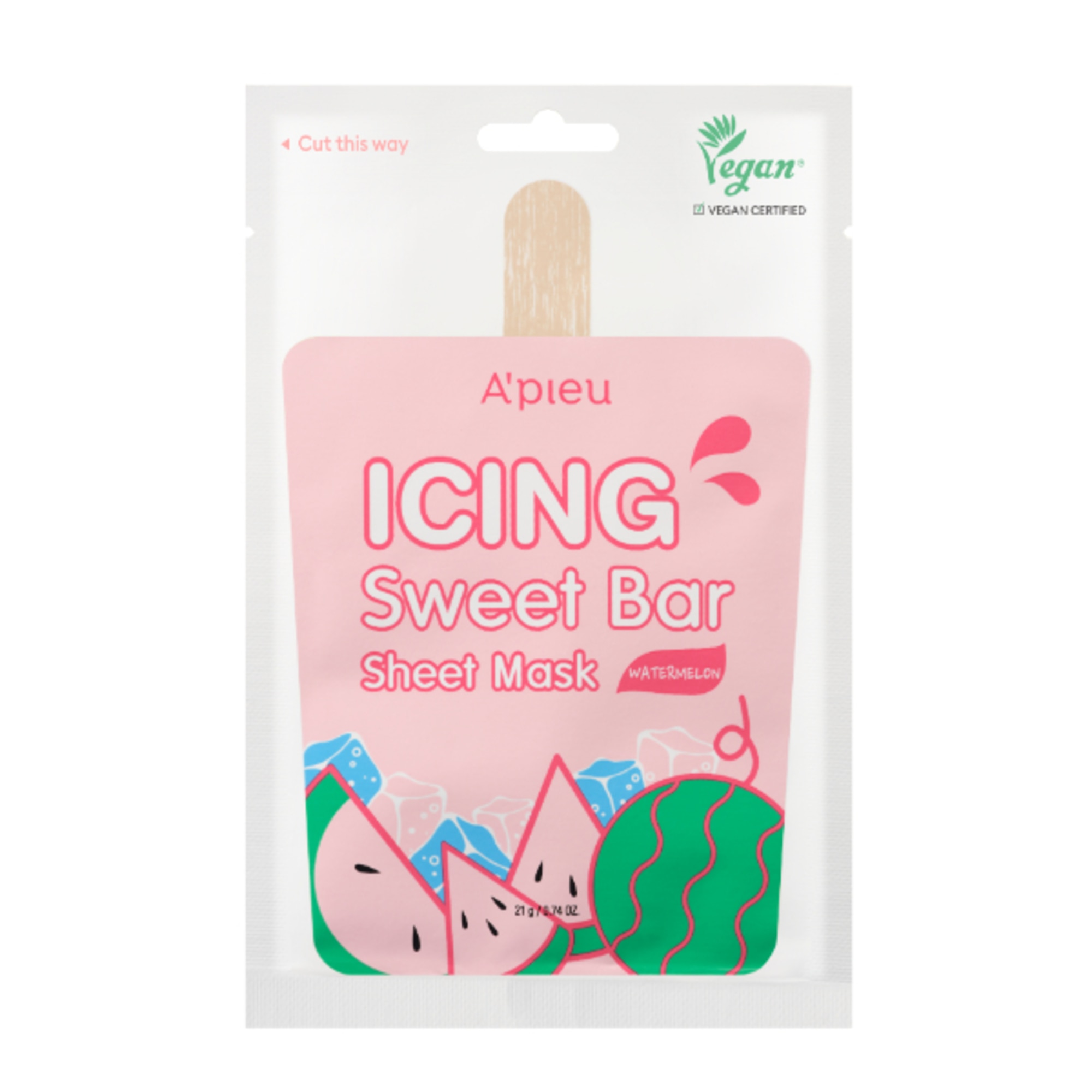 Hai voglia di qualcosa di dolce e fresco con cui viziarti? Mettiti comodo e goditi questa maschera in tessuto finissimo Icing Sweet Bar Watermelon di A'pieu. Uno degli step fondamentali della skincare coreana, questa maschera in tessuto agli estratti di anguria e melograno dona alla pelle luminosità e idratazione. Grazie alla sottilezza del tessuto, la maschera aderisce perfettamente al viso, favorendo la penetrazione dei principi attivi degli ingredienti nella pelle. Un vero concentrato di vitamine con Vitamina A, Vitamina B, Vitamina C, Vitamina E, sali minerali e agenti antiossidanti. La sua formula golosissima con acqua dell'oceano profondo è inoltre arricchita con cetriolo e ginseng.