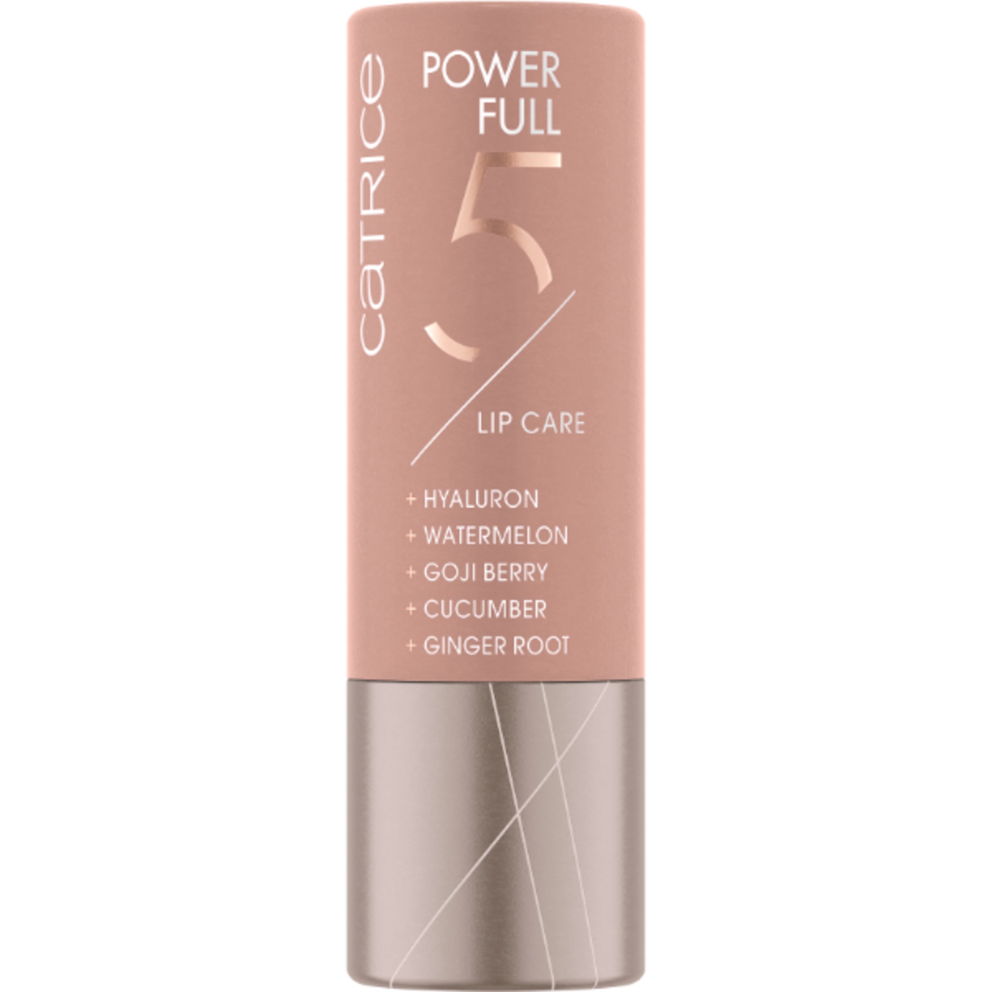 I Fantastici 5 per la cura delle labbra! Dalla combinazione delle strabilianti proprietà del cetriolo, dell’anguria, delle bacche di goji, delle radici di zenzero e dell’acido ialuronico nasce il nuovo Power Full 5 Balsamo Labbra Effetto Riparatore. Questo burro cacao nutre intensamente le labbra, senza renderle appiccicose. Ha inoltre una profumazione dolcemente fruttata e con le sue nuance delicate accentua la naturale bellezza delle labbra.