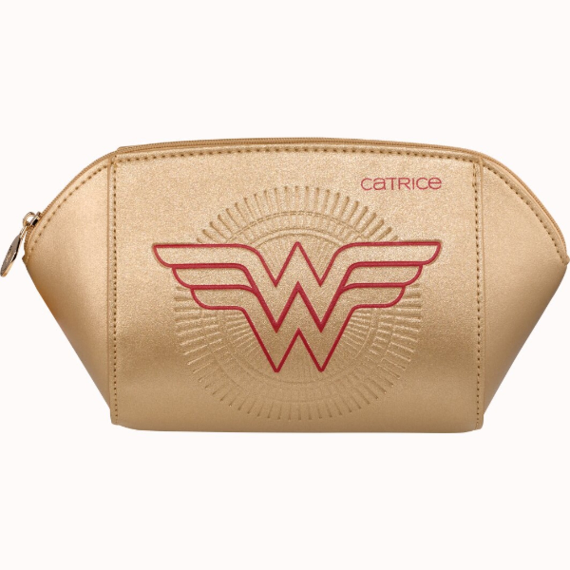 Abbraccia la bellezza e la potenza con la pochette per il make-up Catrice Wonder Woman, realizzata in PVC dorato scintillante, impreziosito da elementi a rilievo e stampa diretta rossa. Perfetta per riporre i tuoi prodotti Catrice Wonder Woman, questa borsa aggiunge un tocco di glamour ai tuoi oggetti indispensabili di tutti i giorni. La pochette da trucco è realizzata con cura e offre spazio sufficiente per i tuoi must-have di bellezza. Lo scintillante finish dorato cattura lo spirito di Wonder Woman, unendo stile e funzionalità per un look audace come te.