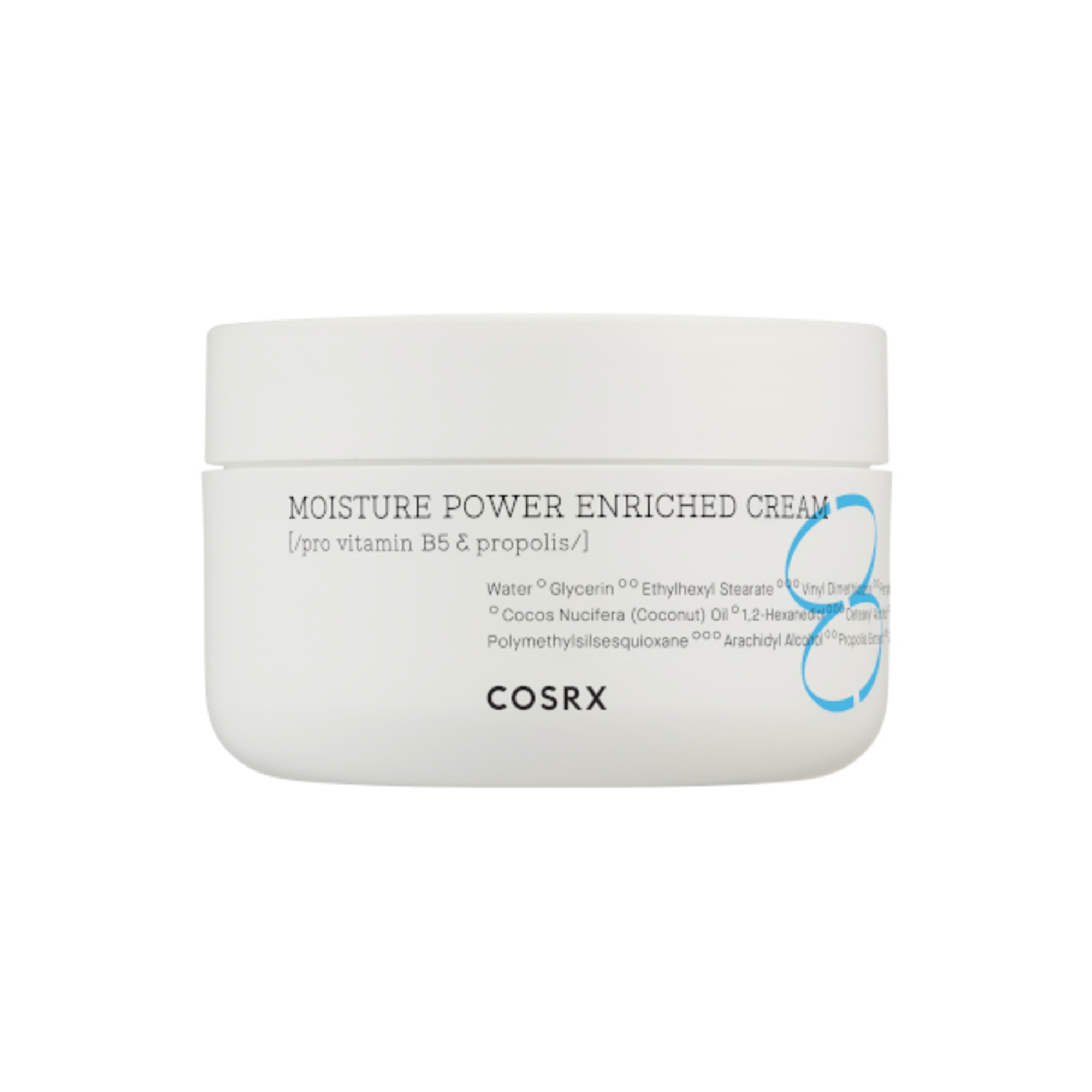 Water, Glycerin, Ethylhexyl Stearate, Vinyl Dimethicone, Pentylene Glycol, Cocos Nucifera (Coconut) Oil, 1,2-Hexanediol, Cetearyl Alcohol, Panthenol, Polymethylsilsesquioxane, Arachidyl Alcohol, Propolis Extract, Hydroxyethyl Acrylate/Sodium Acryloyldimethyl Taurate Copolymer, Polyglyceryl-6 Stearate, Butylene Glycol, Carbomer, Behenyl Alcohol, Glyceryl Stearate, Tromethamine, Dimethiconol, Caprylyl Glycol, Arachidyl Glucoside, Hydrogenated Lecithin, Ceramide NP, Ethylhexylglycerin, Xanthan Gum, Sucrose Stearate, Polyglyceryl-6 Behenate, Sodium Polyacrylate Starch, Stearic Acid, Palmitic Acid, Sodium Hyaluronate, Cholesterol, Hyaluronic Acid, Glycosphingolipids, Hydrolyzed Hyaluronic Acid