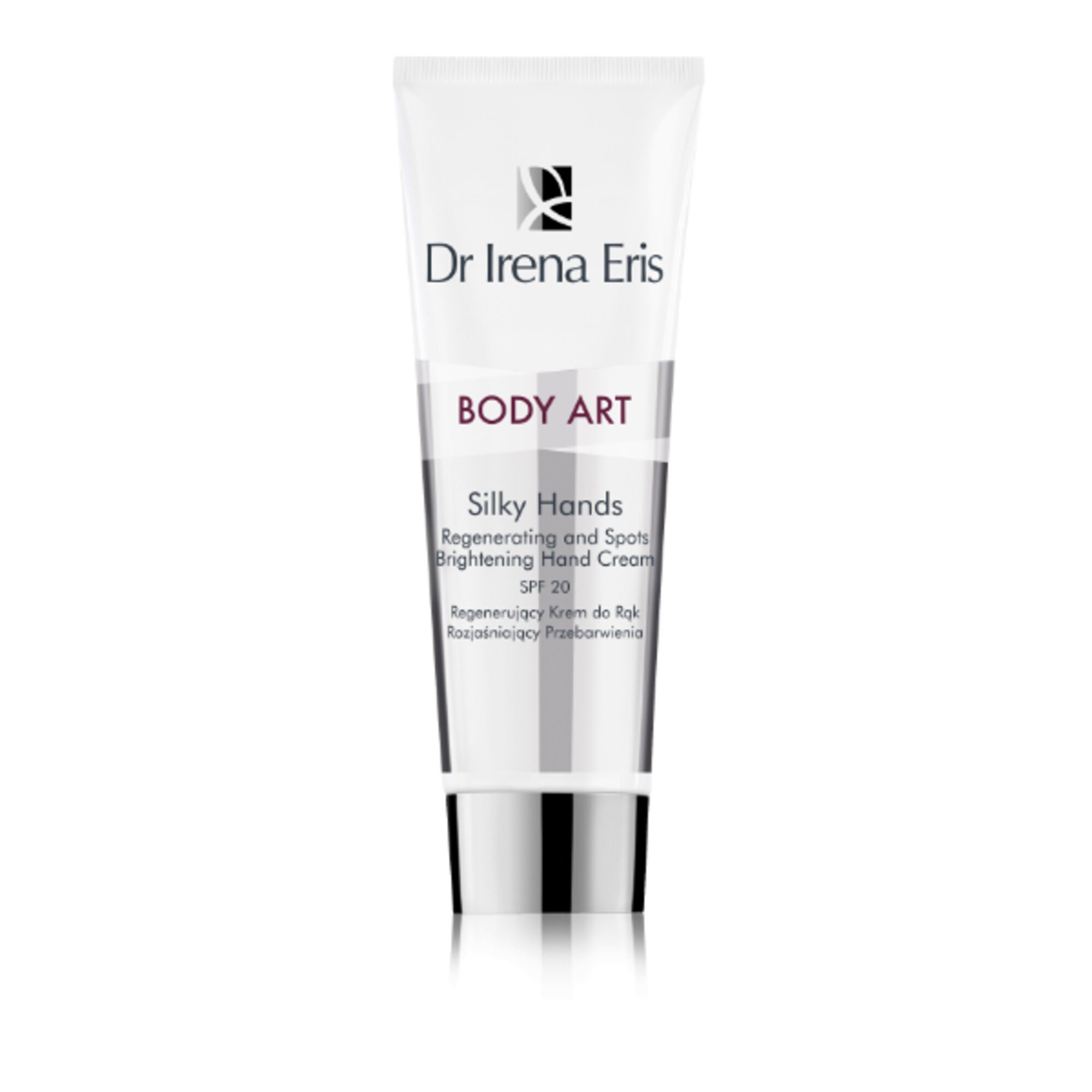 Crema con effetto schiarente per le macchie SPF 20 La sinergia degli ingredienti attivi contenuti nella crema per le mani Body Art garantisce un efficace effetto levigante (100%*) e la rigenerazione della pelle (73%*). Il prezioso olio di argan idrata, ritarda il processo di invecchiamento e schiarisce le macchie presenti sulle mani. La cera d’api e di oliva con eccellente azione emolliente garantiscono un nutrimento perfetto (73%**). La crema è arricchita con i filtri UVA e UVB, proteggendo così la pelle contro l’azione dei raggi solari. * Risultati dei test di applicazione eseguiti presso il Centro scientifico e di ricerca Dr Irena Eris subito dopo l’applicazione. ** Risultati dei testi di applicazione eseguiti presso il Centro scientifico e di ricerca Dr Irena Eris dopo due settimane di utilizzo.