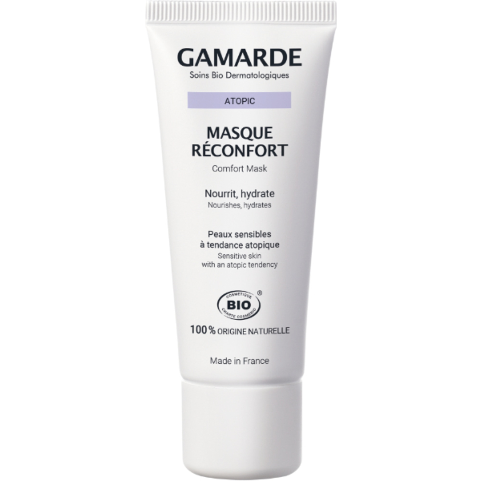 Una maschera che nutre, idrata e lenisce istantaneamente le pelli sensibili a tendenza atopica. Attenua i rossori e le sensazioni di fastidio. Dopo la sua applicazione i rossori si attenuano e la pelle appare immediatamente decongestionata, elastica e rivitalizzata. Testato sotto controllo dermatologico. Ipoallergenico. Senza conservanti. Senza parabeni. Privo di fenossietanolo. Senza coloranti di sintesi. Senza PEG. Senza profumo.
