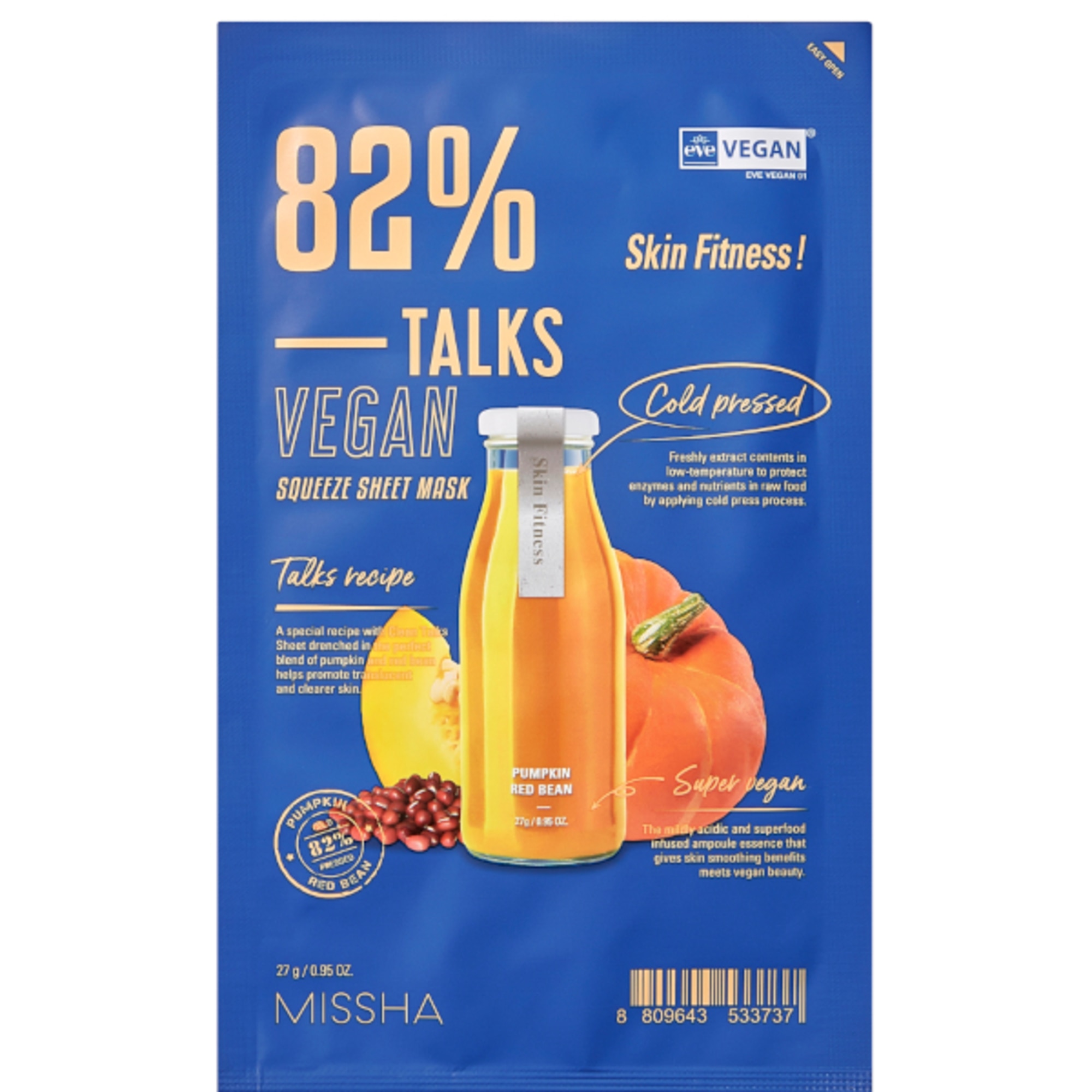Maschera in tessuto imbevuta di una perfetta combinazione di succo di zucca e fagioli rossi aiuta ad ottenere una pelle pelle traslucente, morbida e piu’ chiara. COME USARE: 1. Dopo aver lavato il viso, prepara la pelle con il tonico. 2. Distribuisci uniformemente la maschera facciale sul viso. 3. Lascia agire per 10-20 minuti e rimuovi la maschera. 4. Tampona delicatamente fino a completo assorbimento.CONSIGLI: Applica l'essenza restante sulle zone del collo. L'uso raccomandato è di 2-3 volte a settimana.
