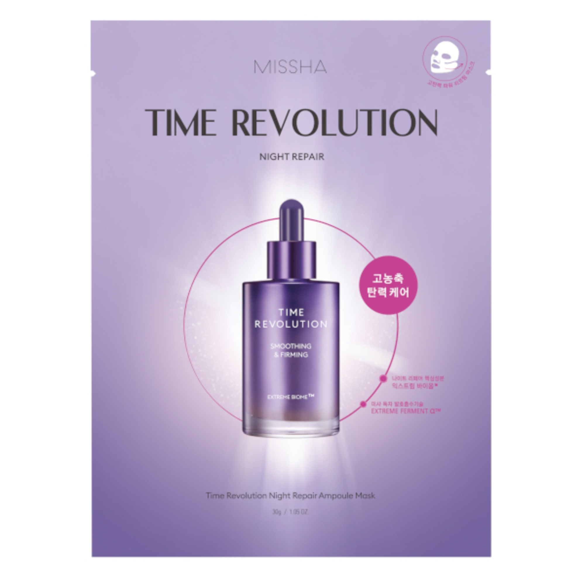 Una maschera in fiale di qualità superiore con un foglio liftante intriso di Night Repair Ampoule altamente concentrata che avvolge perfettamente il viso per far apparire la pelle più soda e nutrita. COME USARE: 1. Dopo la pulizia, rassodare la pelle con il tonico. 2. Aprire il sacchetto e applicare la maschera in modo che il corno rotondo sul bordo superiore della maschera in tessuto sia rivolto verso destra, allungando la parte inferiore alata orizzontalmente sul viso. 3. Lasciare agire la maschera per 10-20 minuti e poi gettala. Picchiettare leggermente l'essenza rimasta fino a quando non viene completamente assorbita dalla pelle. Consigli: applicare la maschera stendendola sui contorni del viso. Tirare il lato inferiore dell'aletta verso i lati degli occhi per ottenere maggiore elasticità. Sovrapporre la parte inferiore dell'ala al foglio superiore per una migliore aderenza.