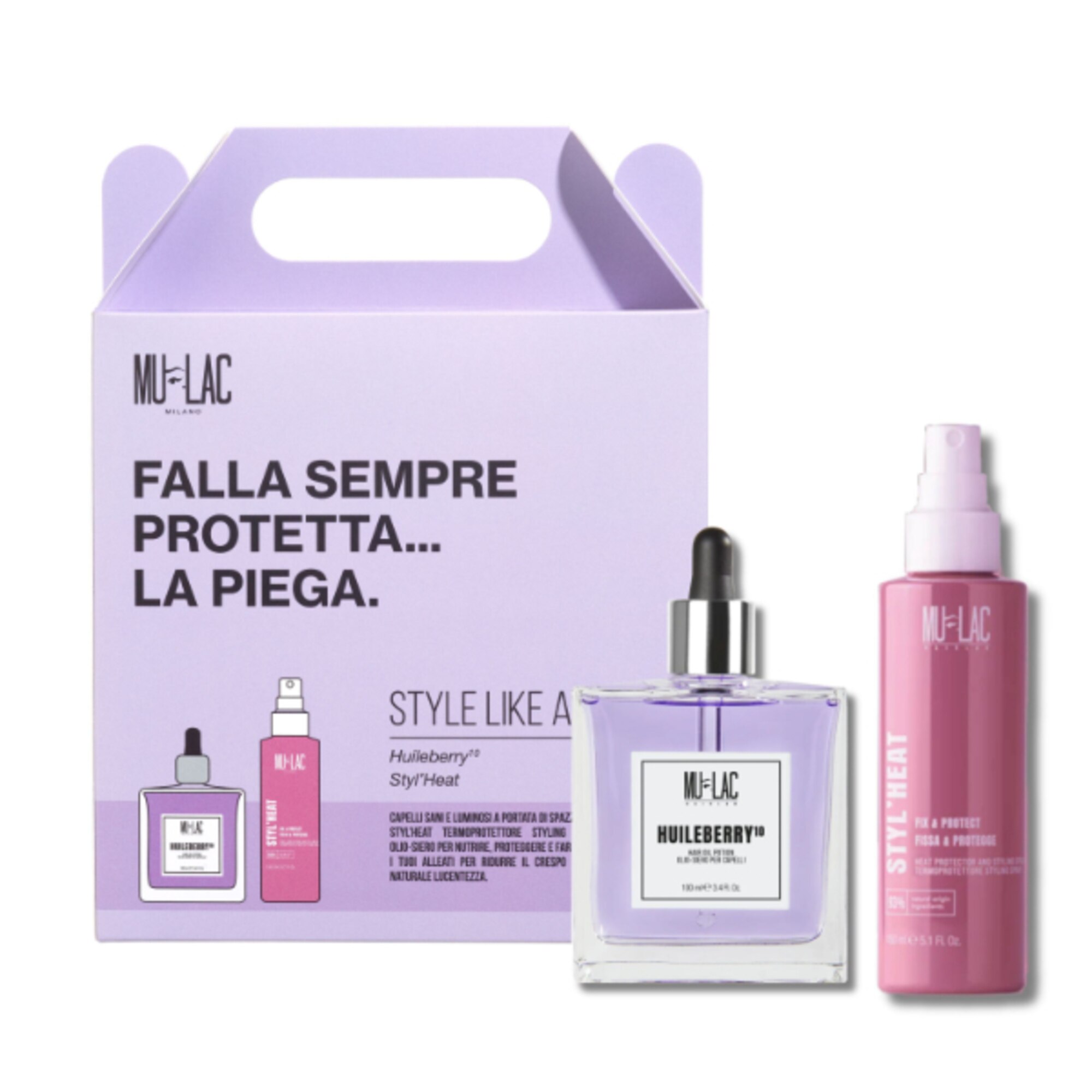 STYL’HEAT - TERMOPROTETTORE STYLING SPRAY INGREDIENTS: CYCLOPENTASILOXANE, DIMETHICONOL, C12-15 ALKYL BENZOATE, VACCINIUM MYRTILLUS SEED OIL, ARGANIA SPINOSA KERNEL OIL, MORINGA OLEIFERA SEED OIL, MAURITIA FLEXUOSA FRUIT OIL, PASSIFLORA EDULIS SEED OIL, EUTERPE OLERACEA FRUIT OIL, ORBIGNYA OLEIFERA SEED OIL, ORYZA SATIVA (RICE) BRAN OIL (ORYZA SATIVA BRAN OIL), LIMNANTHES ALBA (MEADOWFOAM) SEED OIL (LIMNANTHES ALBA SEED OIL), BUTYROSPERMUM PARKII (SHEA BUTTER) EXTRACT (BUTYROSPERMUM PARKII BUTTER EXTRACT), FRAGRANCE (PARFUM), BENZOPHENONE-3, TETRAMETHYL ACETYLOCTAHYDRONAPHTHALENES, BENZYL SALICYLATE, HEXYL CINNAMAL, HEXAMETHYLINDANOPYRAN, CITRONELLOL, VANILLIN, LINALOOL, LINALYL ACETATE, COUMARIN, GERANYL ACETATE, ANETHOLE, VIOLET 2 (CI 60725).