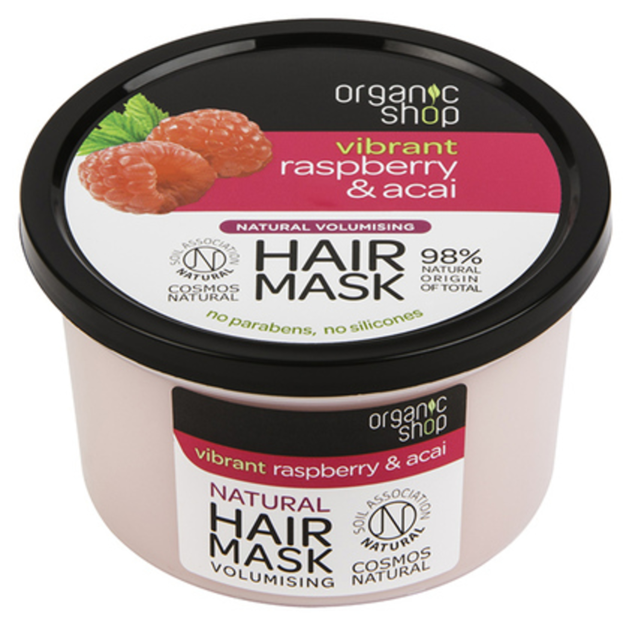Con il suo alto contenuto di vitamina C il Lampone biologico rende i capelli luminosi e facilmente districabili; mentre l'Acai biologico originario dell'Amazzonia ricco di vitamine A B ed E aiuta a rendere piú folti e corposi i capelli sottili donando elasticitá e lucentezza.