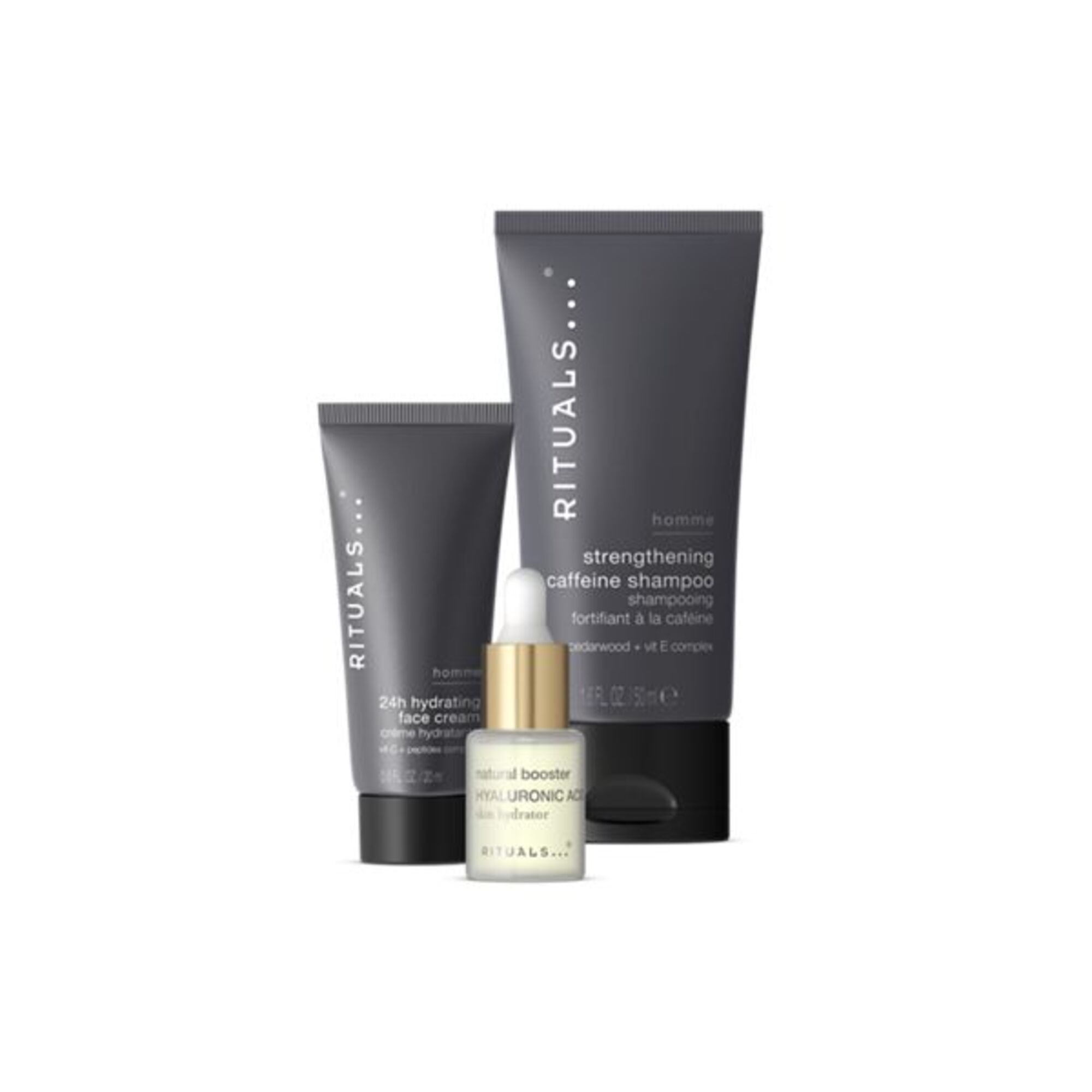 Una routine quotidiana completa per la cura di sé in un pratico set, ideale da regalare, da portare in viaggio o da provare. Questa routine in tre fasi inizia con uno shampoo alla caffeina, che aiuta a energizzare il cuoio capelluto e rinforzare i capelli, seguito da un booster cutaneo all'acido ialuronico per trattenere l'idratazione. Completa il trattamento con la leggera crema viso idratante 24 ore, arricchita con vitamina C e peptidi, per levigare e rinfrescare la pelle.Contiene shampoo rinforzante da 50 ml, booster all'acido ialuronico da 6,5 ml e crema viso idratante da 20 ml.