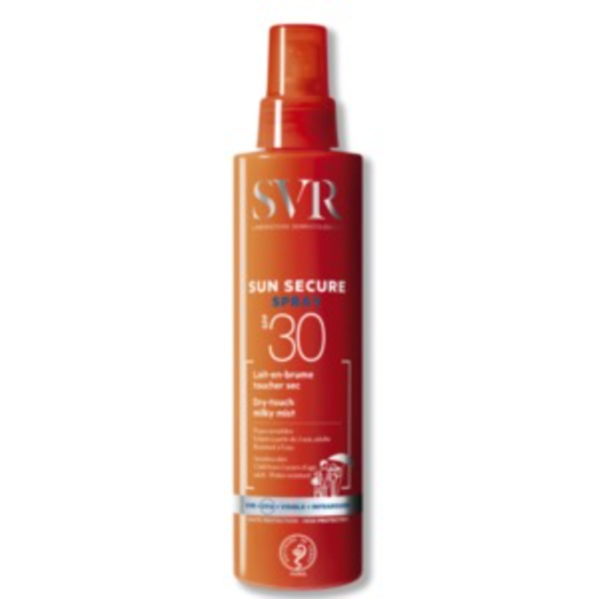 SUN SECURE SPRAY CORPS SPF30: Latte Spray per viso e corpo dal finish secco, adatto a tutti i tipi di pelle, anche le più sensibili, di tutta la famiglia. Grazie alla tecnologia Integral Sun Secure, la protezione medio/alta SPF30 agisce su tutti i tipi di raggi UVA-UVB-INFRAROSSI-VISIBILI. Viso e corpo